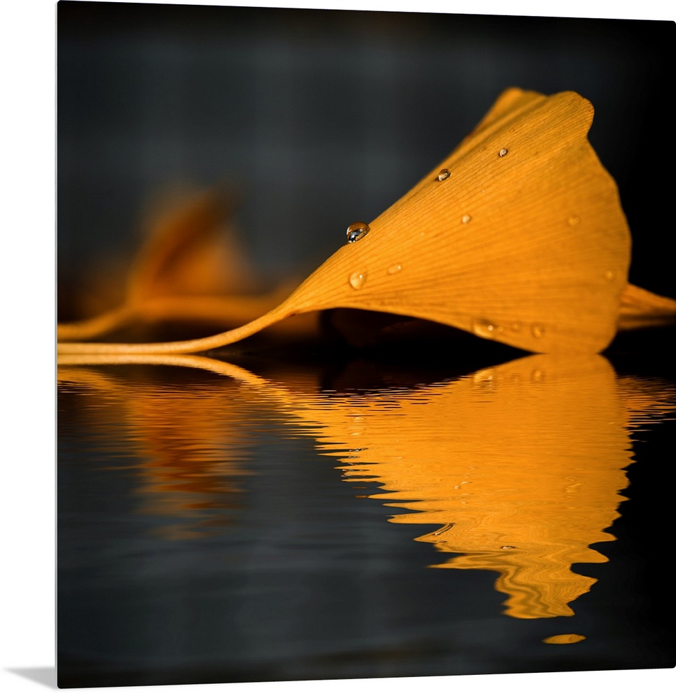 <p>Reflection of a yellow gingko leaf</p>