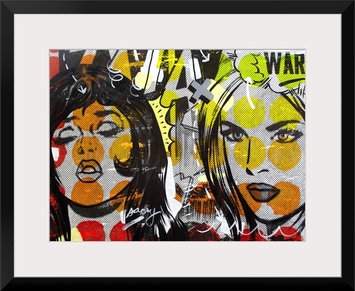 <p>Pop art composed of comic illustrations and bold text, reminiscent of Lichtenstein, of two women in a rivalry.</p>