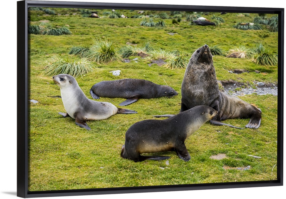 <p>Antarctic fur seals (Arctocephalus gazella), Grytviken, South Georgia, Antarctica</p>