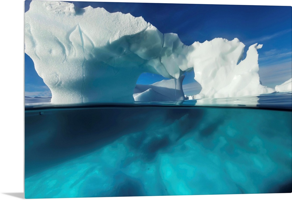 <p>Antarctica, Underwater view of arched Iceberg floating near Enterprise Island on sunny spring morning along Antarctic Peninsula.</p>
