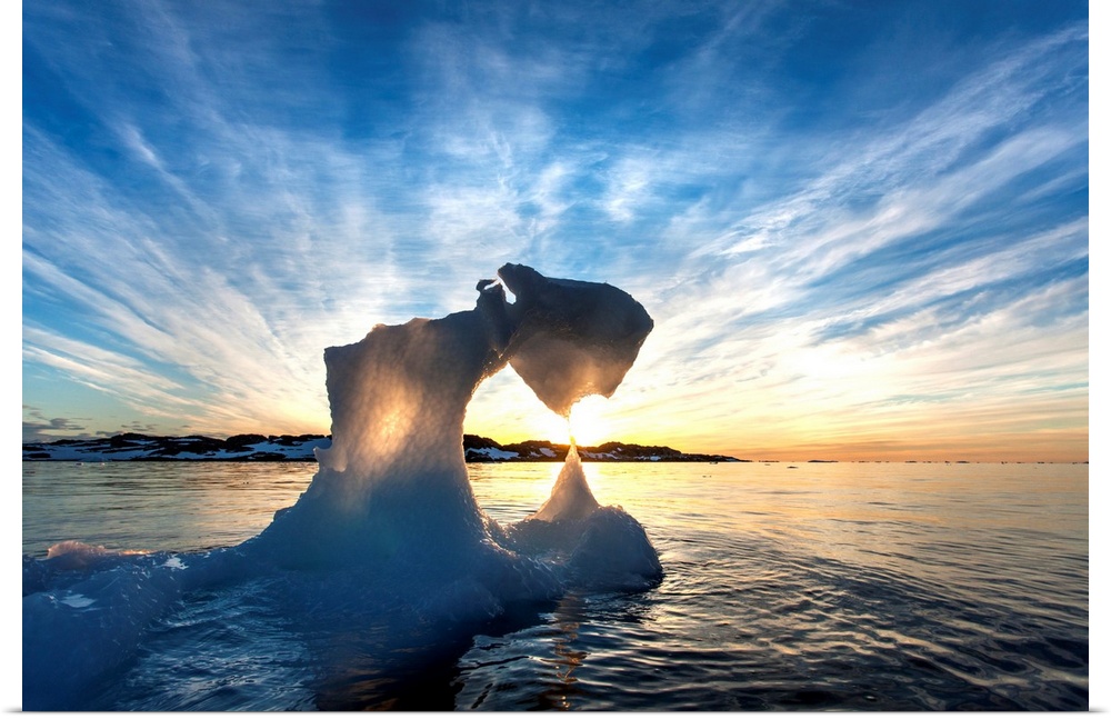 <p>Antarctica, setting midnight sun lights Iceberg near Palmer Station by Torgersen Island on spring evening.</p>