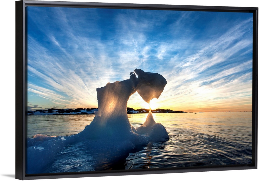 <p>Antarctica, setting midnight sun lights Iceberg near Palmer Station by Torgersen Island on spring evening.</p>