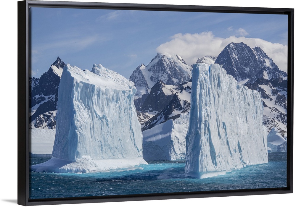 <p>Antarctica, South Georgia island, coopers bay. Landscape with icebergs and mountains.</p>