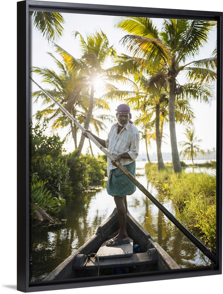 <p>Anthony the boatman guiding the vessel through Keralan backwaters near North Paravoor, Kerala, India</p>
