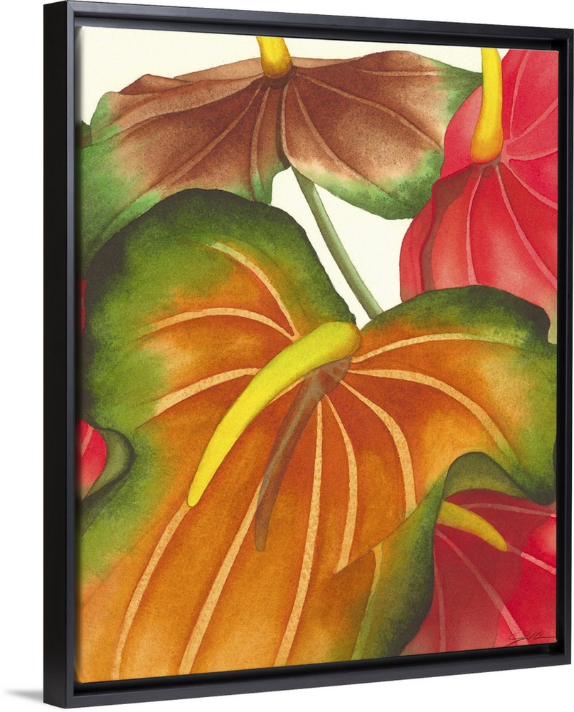 <p>A contemporary painting of colorful tropical plants.</p>