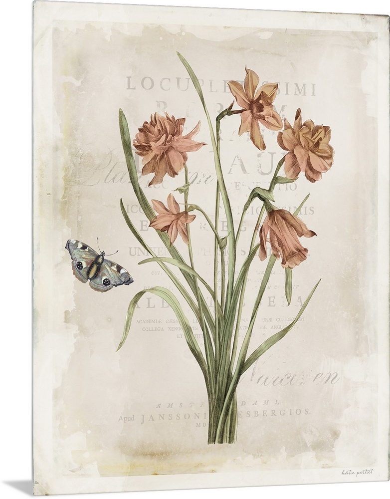 Art Traditional Contemporary Art Cottagecore Decorative Art Florals Daffodil Spring Graphic Art Katie Pertiet Butterfly