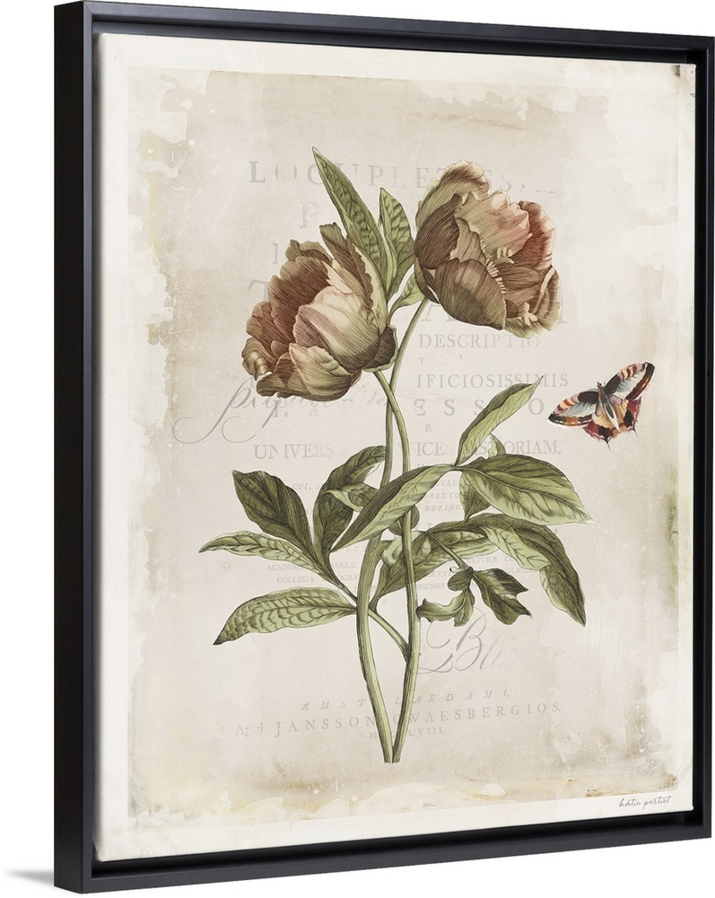 Art Traditional Contemporary Art Decorative Art Florals Peony Four Seasons Spring Graphic Art Katie Pertiet Butterfly