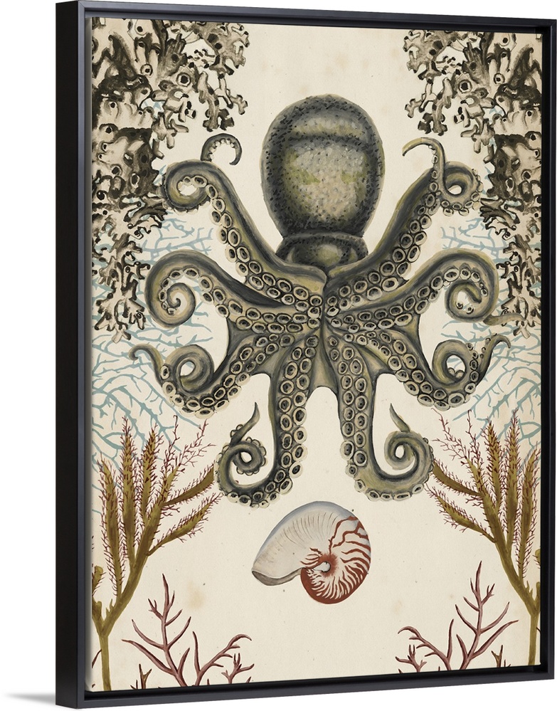Art Brown Wall Art Decorative Art Naomi McCavitt Painting Wildlife Marine Life Octopus and Squid