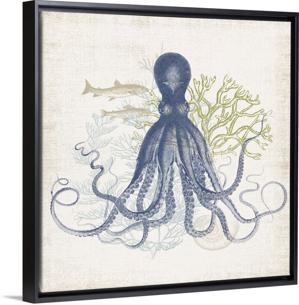 Art Coastal Victoria Barnes Blue Wall Art Decorative Art Graphic Art Wildlife Marine Life Octopus and Squid