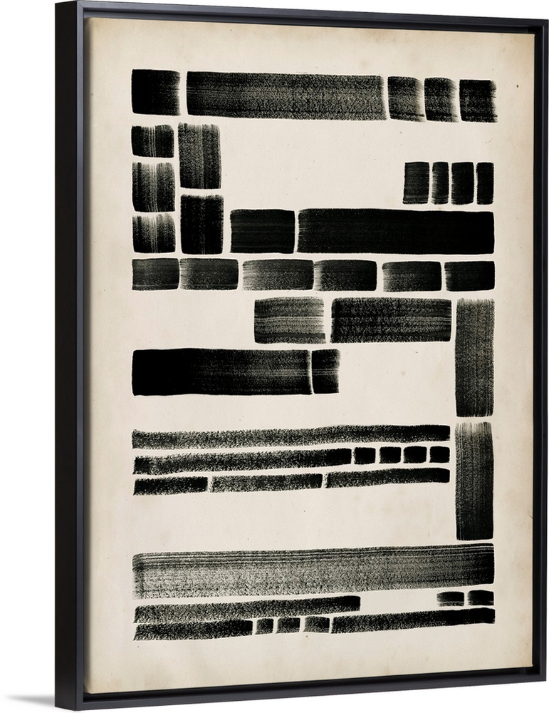 <p>Abstract artwork of a pattern of black rectangles of varying sizes.</p>