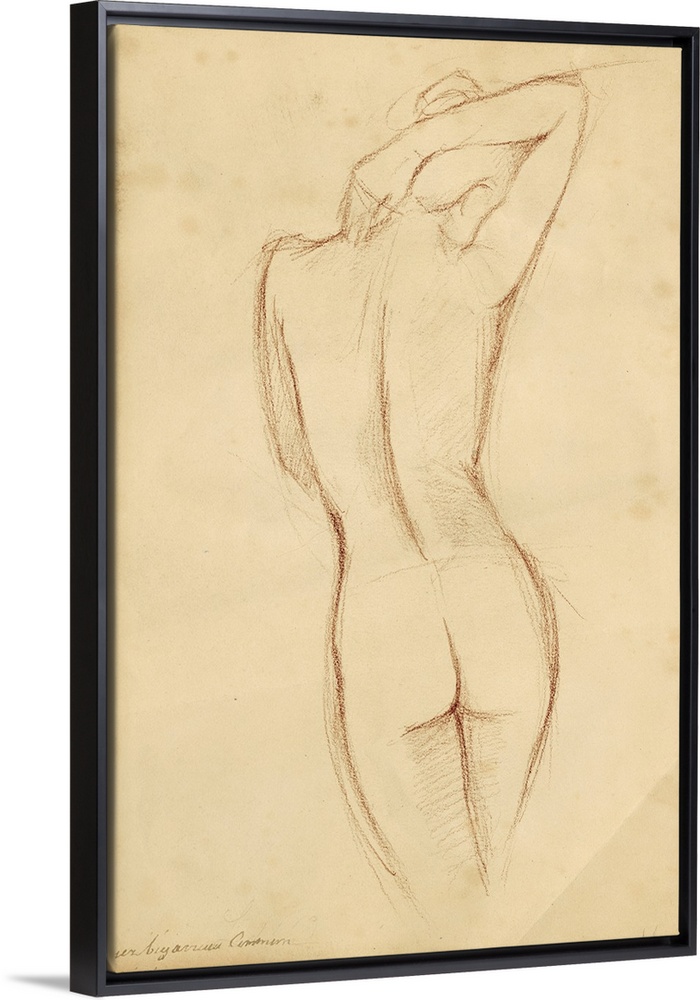 <p>Artwork that consists of a figurative drawing of the back side of a woman.</p>