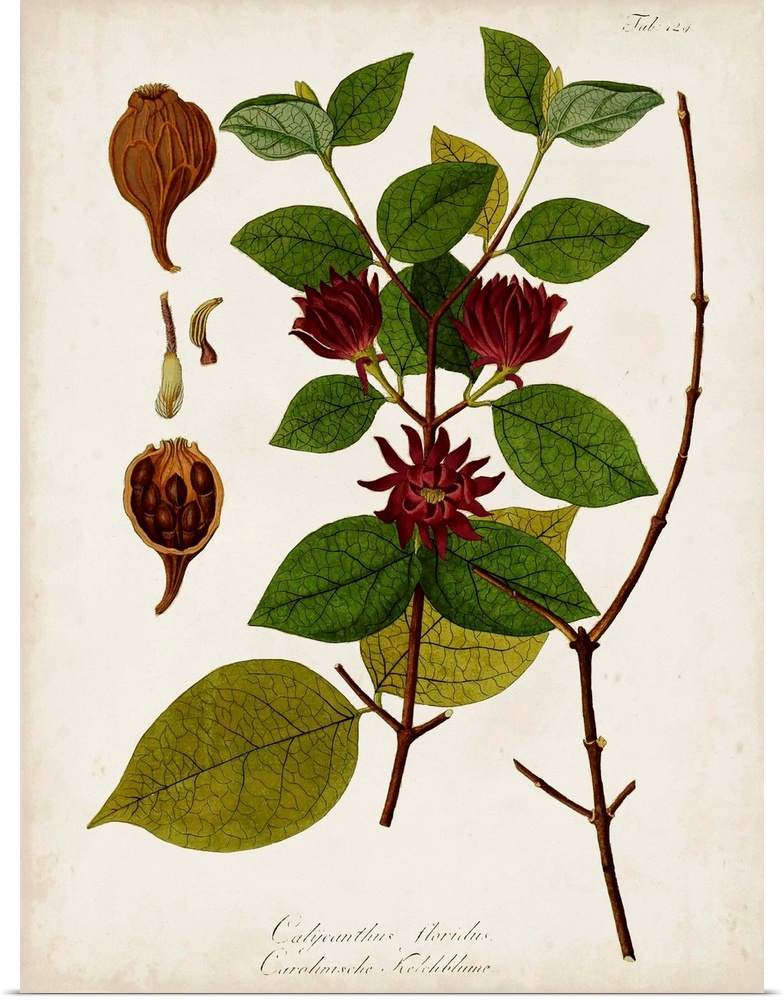 Art Florals Leaves Painting Red Wall Art Vintage Art Illustrations Botanicals