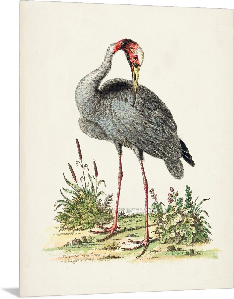 Art George Edwards Painting Vintage Art Wildlife Bird Crane Heron and Egret
