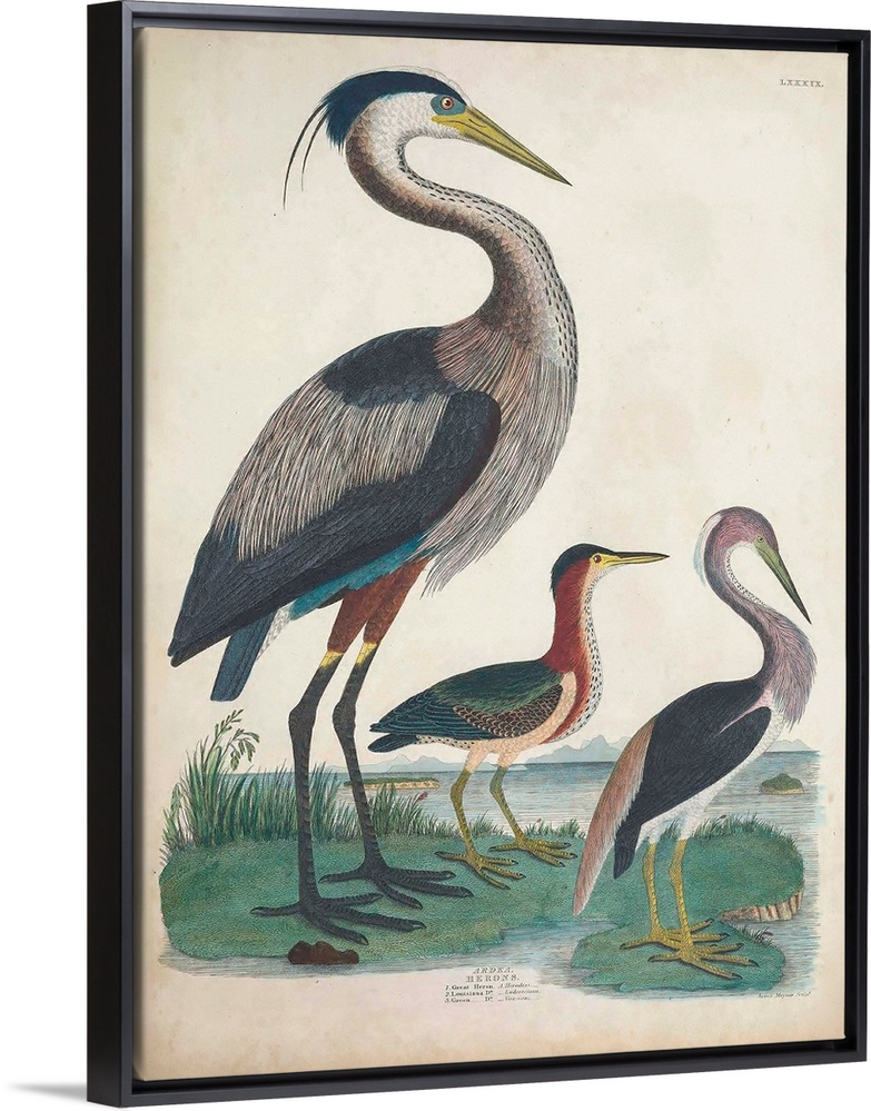 Art Painting Vintage Art Wildlife Bird Heron and Egret