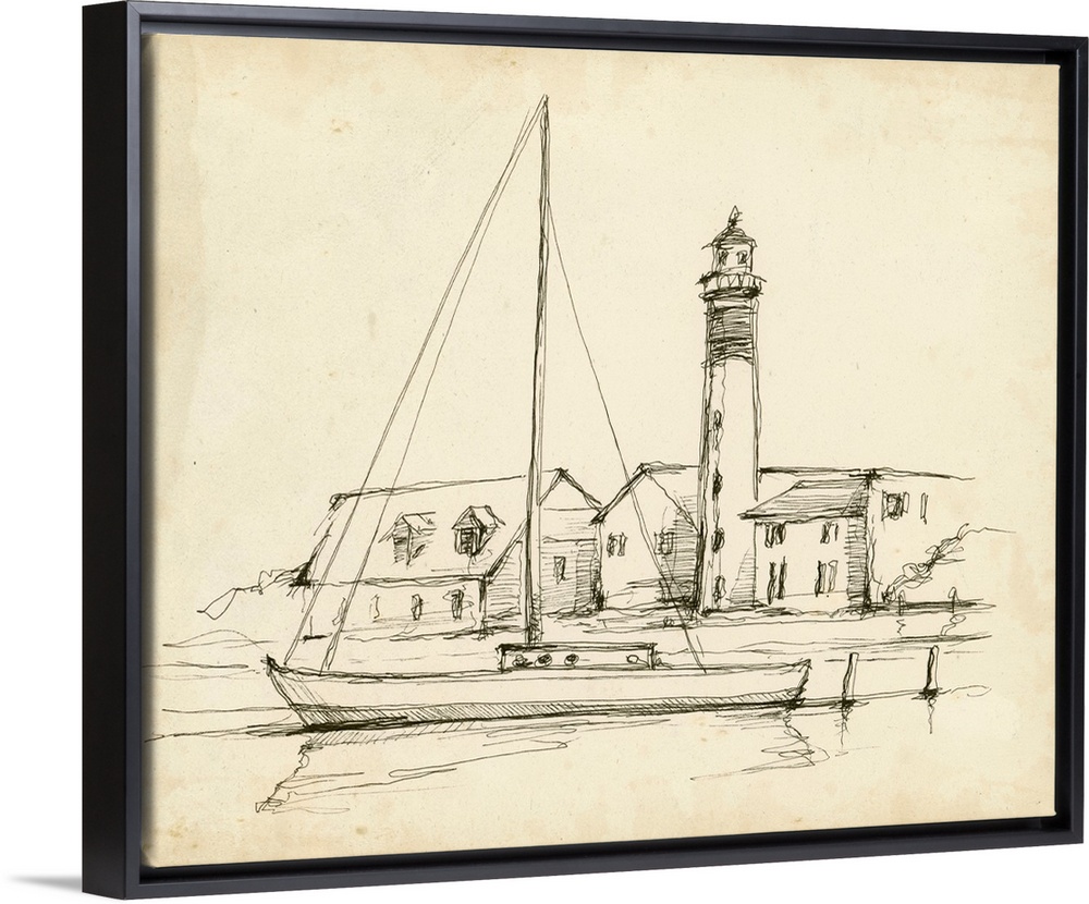 Art Coastal Decorative Art Drawing Ethan Harper Landscapes Harbor Lighthouse Transportation Boat