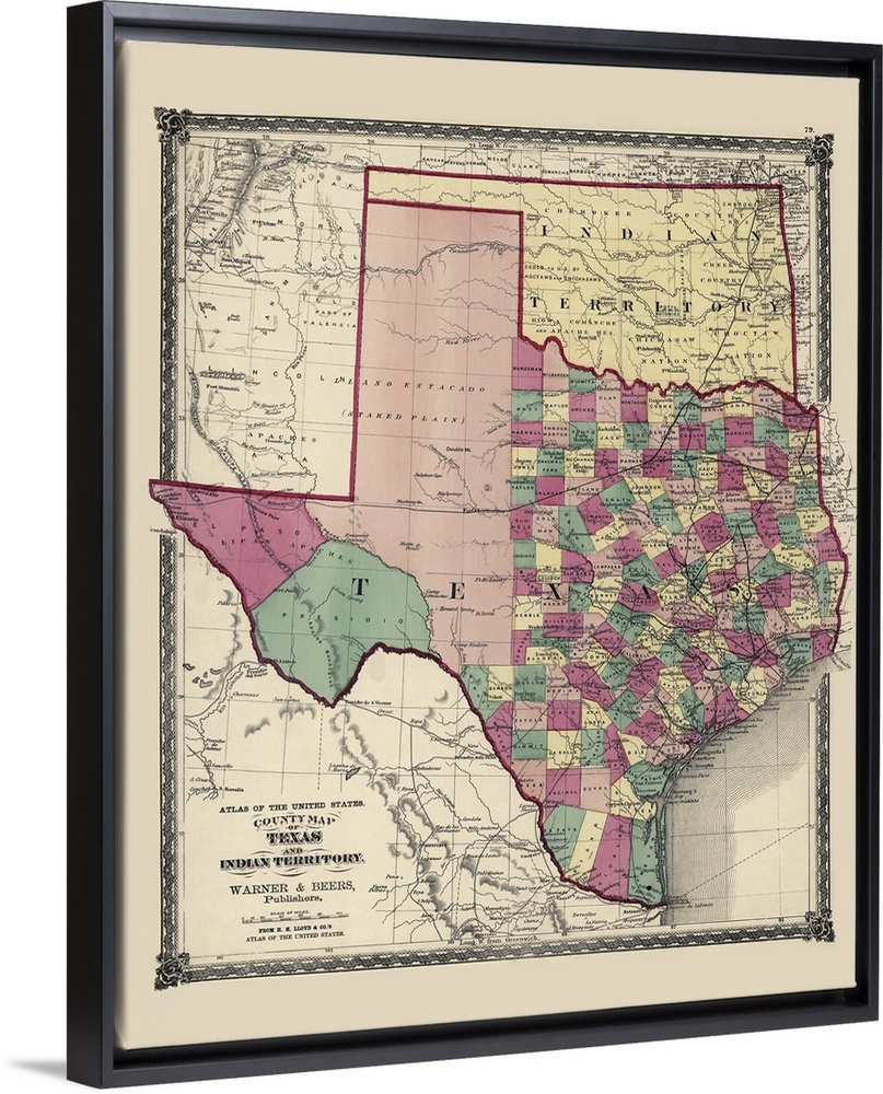 <p>This is a vintage map of the state of Texas and Oklahoma which was still considered Indian territory.</p>