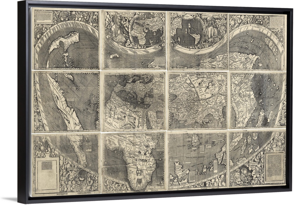 <p>This vintage map of the world shows the earth sectioned off into twelve grids. The map is in a sepia tone.</p>
