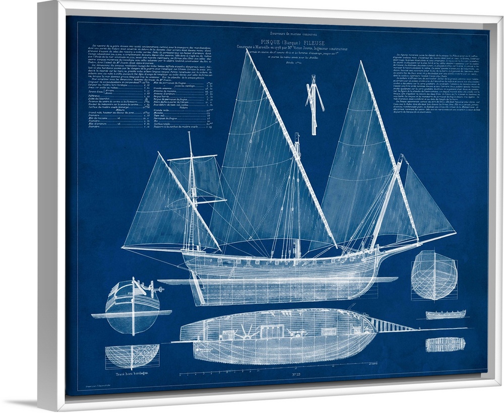 Art Blueprints Blue Wall Art Decorative Art Drawing Vision Studio Transportation Boat Ship