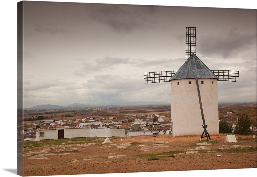 <p>Antique windmills in a field, Campo De Criptana, Ciudad Real Province, Castilla La Mancha, Spain</p>