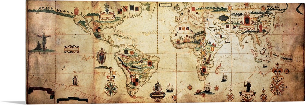 <p>Antique world planisphere portolan map of Spanish and Portuguese maritime and colonial empire. Creat</p>