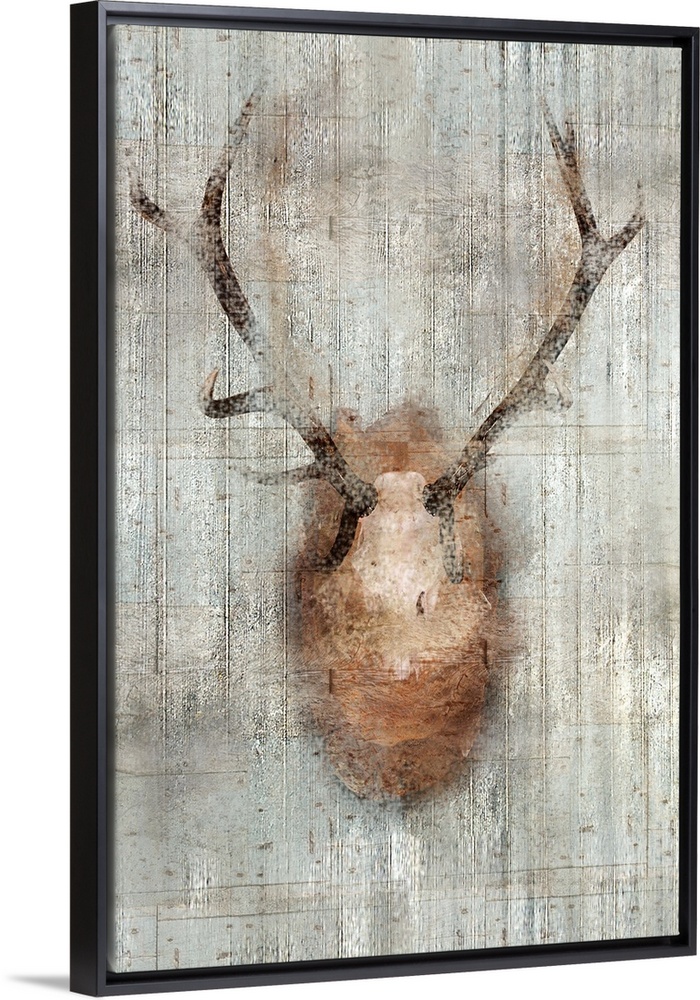 <p>A mounted hunting trophy on a wall with a weathered texture.</p>