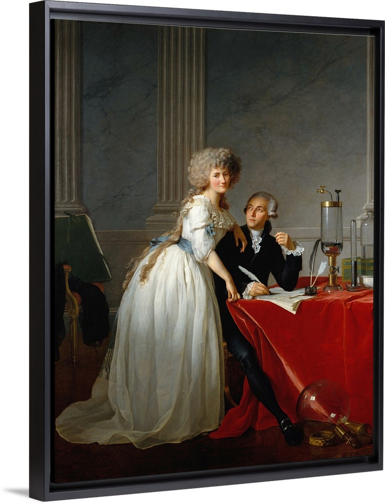 <p>This great double portrait was painted when the artist, at the peak of his powers, had become the standard-bearer of French Neoclassicism. Lavoisier is known for his pioneering studies of oxygen, gunpowder, and the chemical composition of water. In 1789 he published a treatise on chemistry illustrated by his wife, who is believed to have been David's pupil. Lavoisier was involved in a political scandal which led him to withdraw the present painting from the 1789 Salon. Despite his service to the revolutionary regime, he was guillotined.</p>