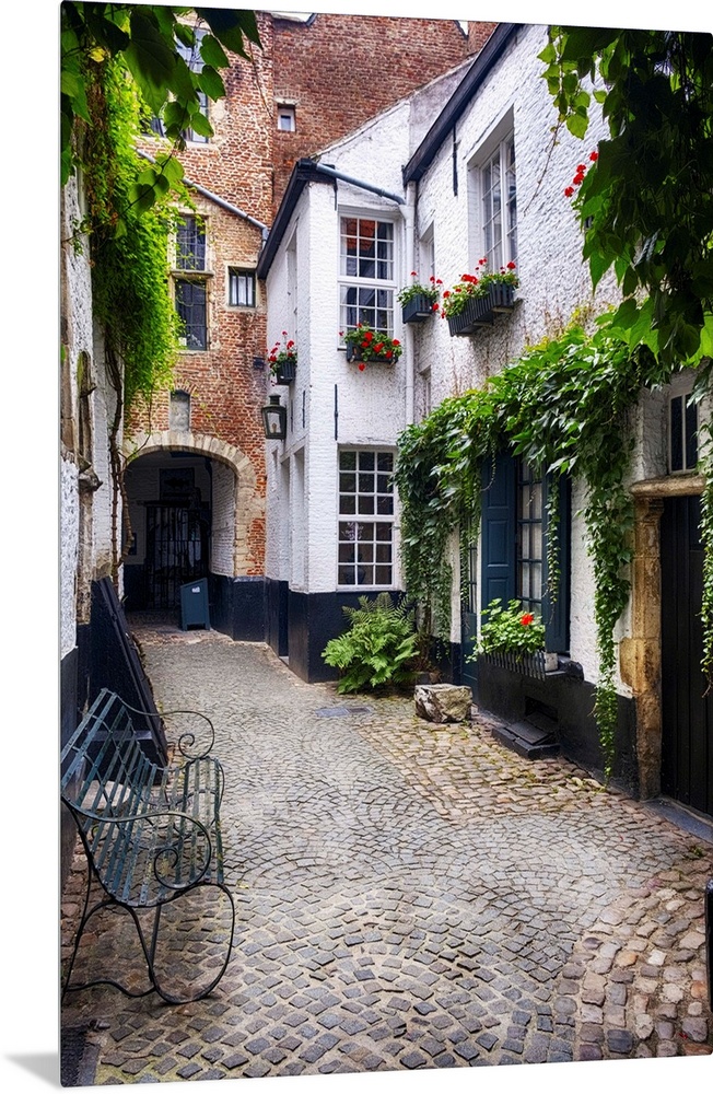 <p>View of a Historic Inner Courtyard with Medieval Houses, Antwerpen, Flanders, Belgium</p>