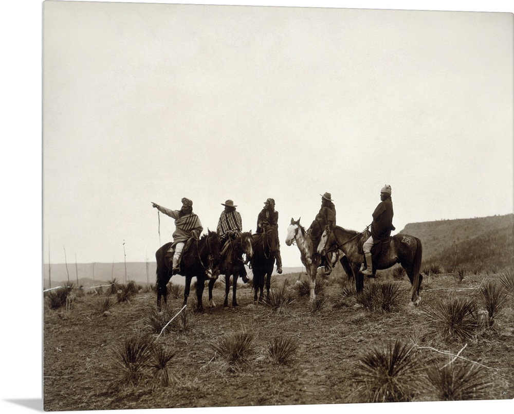 <p>Apache Men, c1903. 'The Lost Trail.' A Group Of Apache Men On Horseback. Photograph By Edward S. Curtis, c1903.</p>