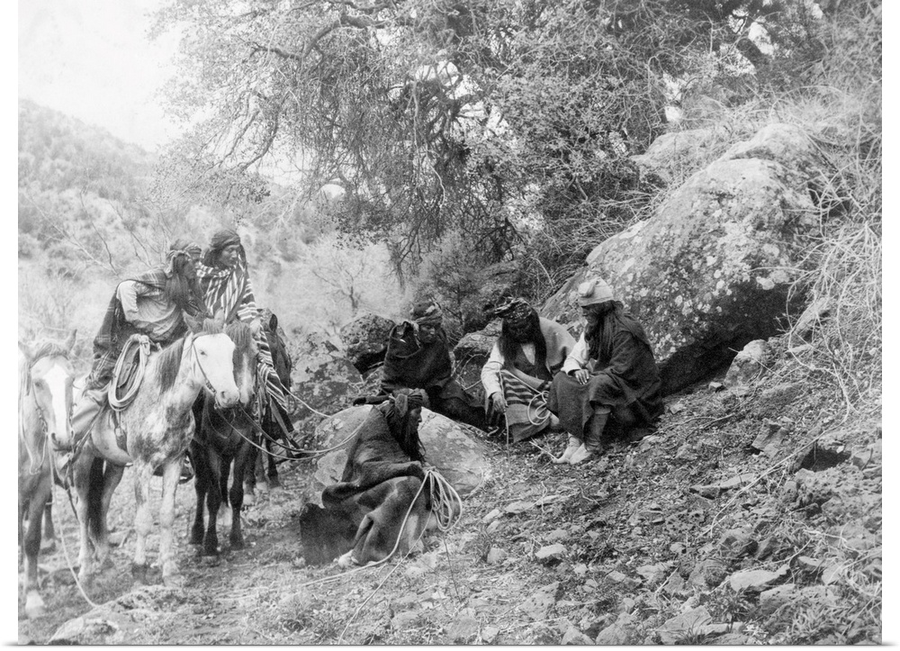 <p>Apache Men, c1906. 'Storytelling.' An Apache Man Marks the Ground With A Stick While Others Look On. Photograph By Edward S. Curtis, C1906.</p>