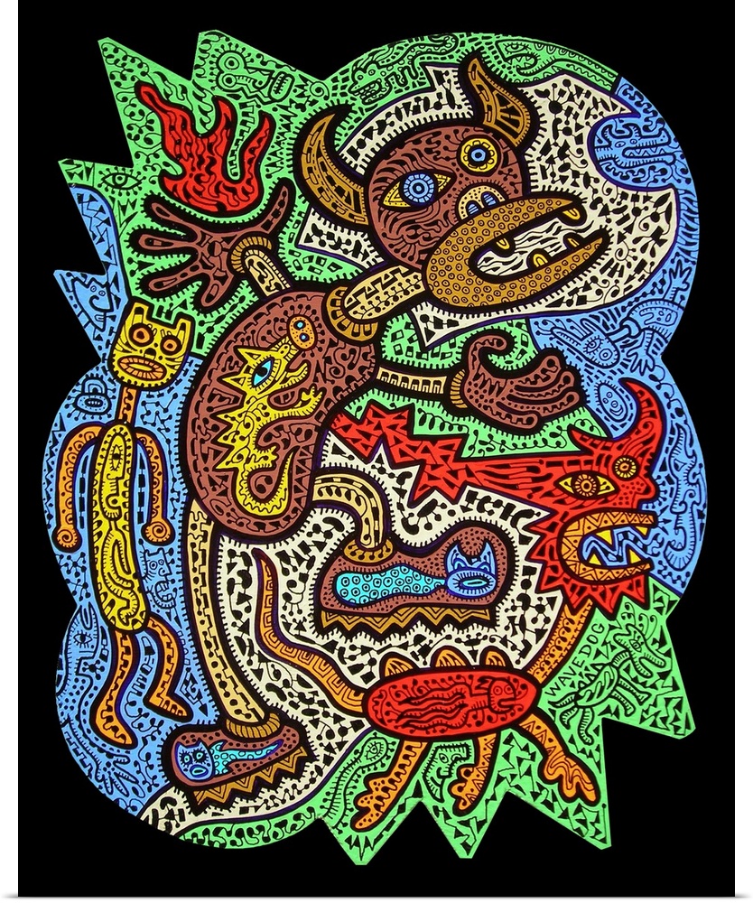<p>Contemporary artwork with tons of detail and color, with aboriginal inspired undertones in an urban art style.</p>