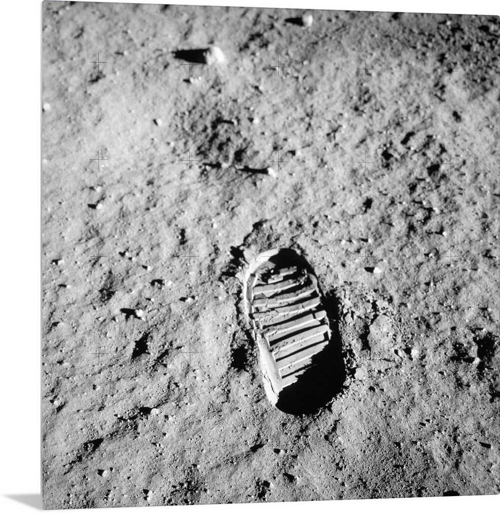 <p>Apollo 11 bootprint on Moon. This bootprint was made by US astronaut Buzz Aldrin (born 1930), the Apollo 11 Lunar Module Pilot. Aldrin photographed this bootprint about an hour into the lunar extra-vehicular activity carried out by him and Neil Armstrong on 20 July 1969. It was obtained for analysis by soil mechanics experts studying the lunar surface.</p>