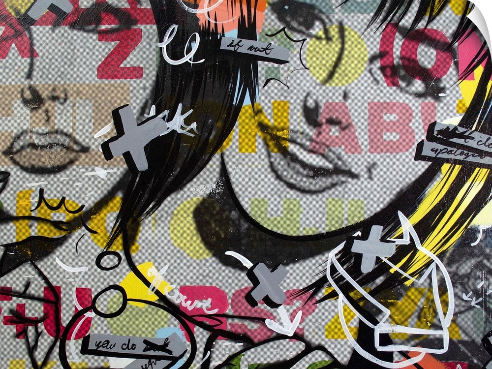 <p>Pop art composed of comic illustrations and bold text, reminiscent of Lichtenstein, of two women having a conversation.</p>