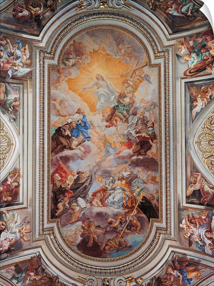 <p>Apotheosis of the Franciscan Order, by Giovanni Battista Gaulli known as Baciccia (or Baciccio), 1707, 18th Century, fresco, - Italy, Lazio, Rome, Santi Apostoli Basilica. Frescoed vault Apotheosis of the Franciscan Rule Order stucco Saints Jesus Christ.</p>