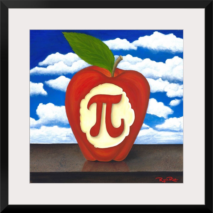 <p>Square pun painting of an apple with the pi symbol carved into it (apple pi - apple pie)</p>