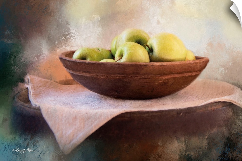 <p>Decorative artwork of a still-life image of a bowl of apples.</p>