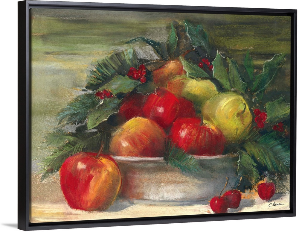 <p>Contemporary painting of a bowl of lush looking fruit.</p>
