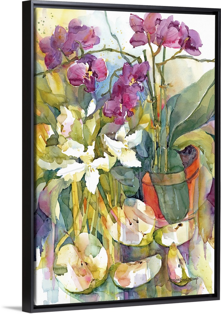 Art Annelein Beukenkamp Contemporary Art Plants and Flowers Florals Orchid Food and Drink Fruit Apple Painting Still Life Watercolor