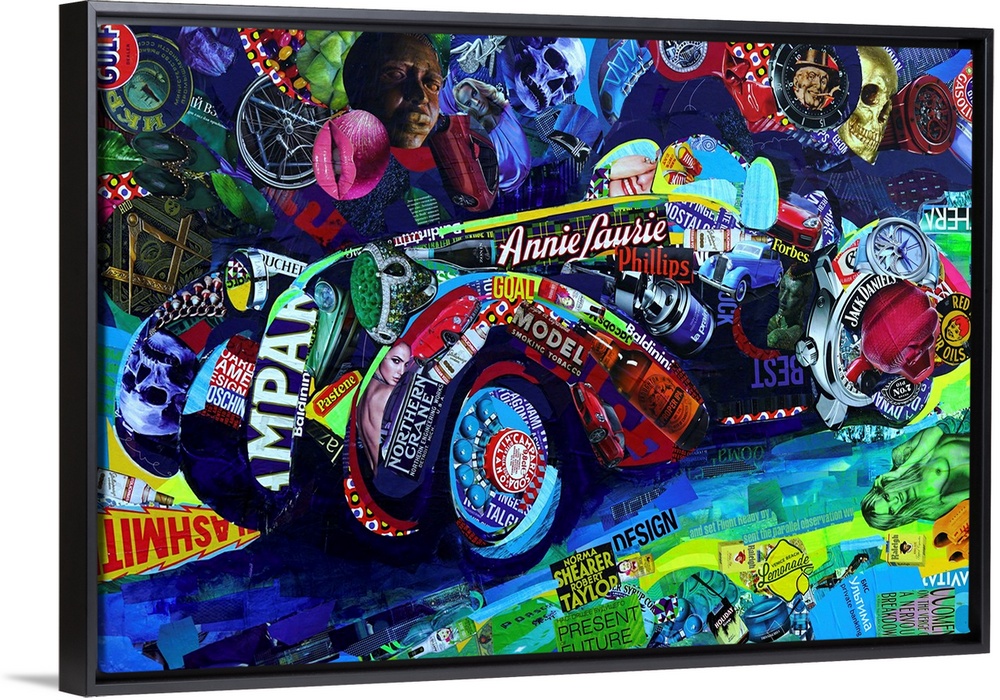 Art Blue Wall Art Sasha Bom Contemporary Art Mixed Media Art Transportation Car Race Cars