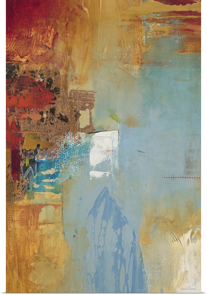 <p>Contemporary abstract artwork using rich earthy tones and textures, mixed with aqua blue tones.</p>