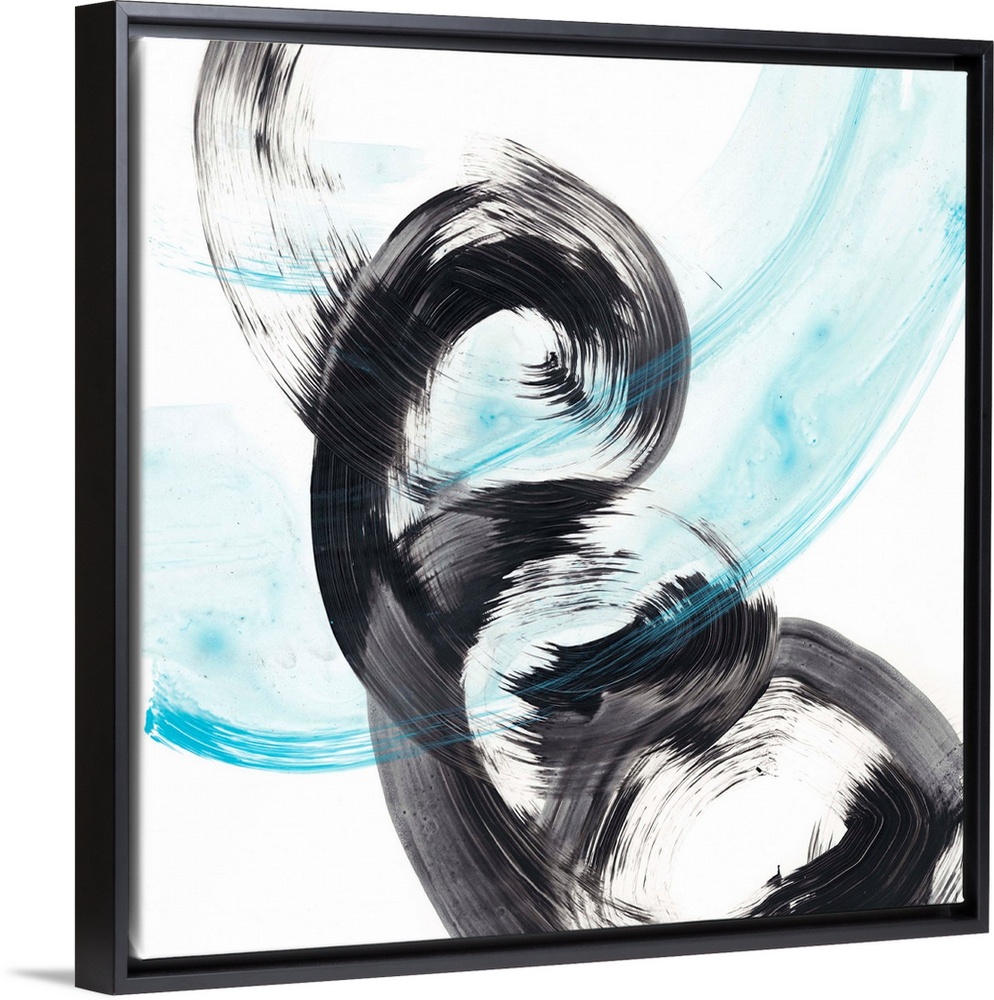 <p>Black and frosty blue spirals make up this dynamic contemporary abstract.</p>