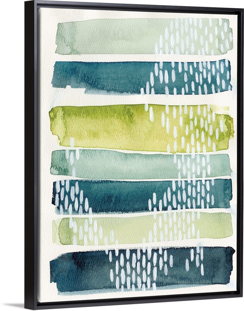 <p>Watercolor abstract painting in blue and green shades, with white patterns.</p>