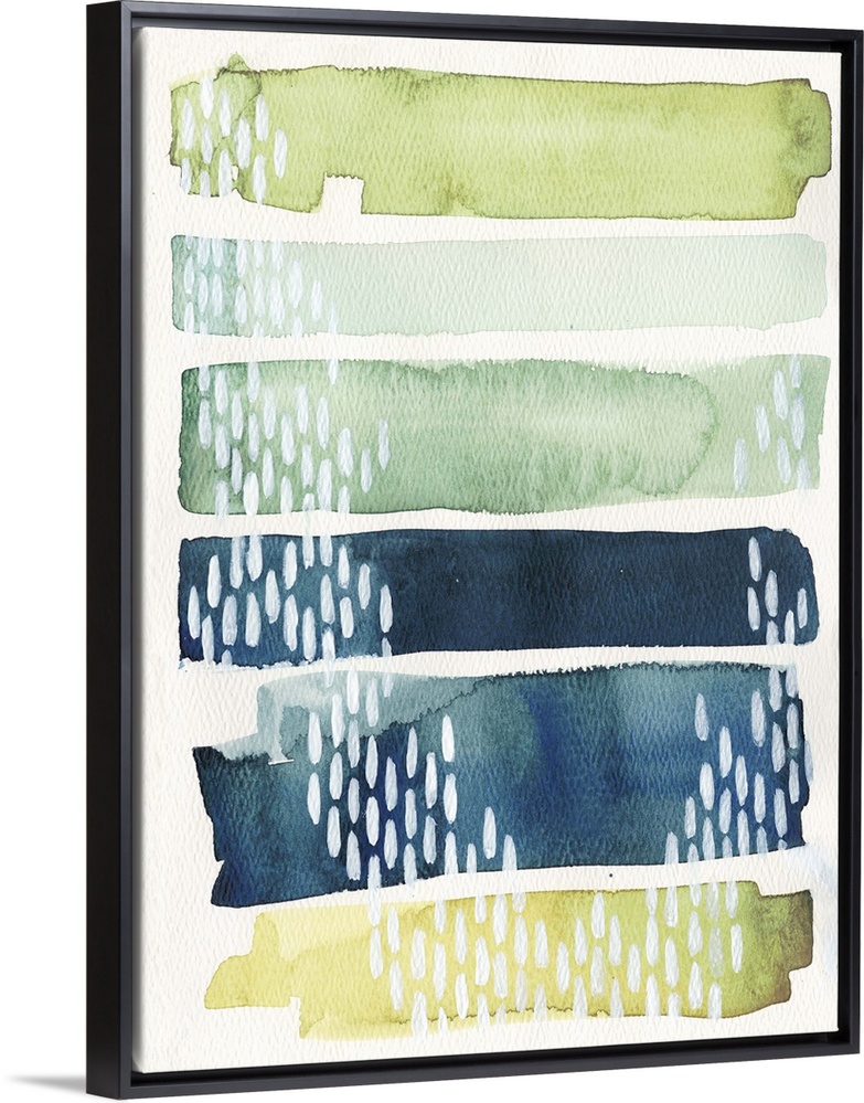 <p>Watercolor abstract painting in blue and green shades, with white patterns.</p>