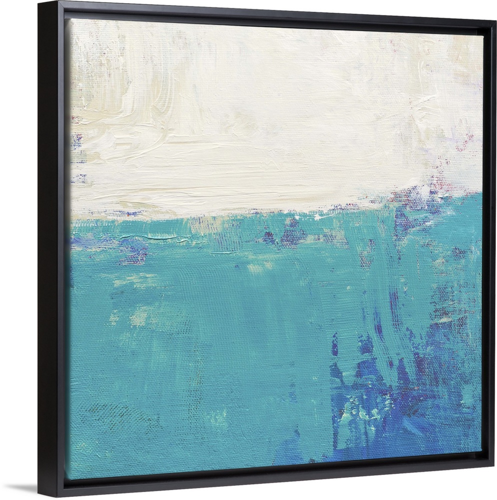<p>Contemporary abstract colorfield painting using aqua and white in a distressed style.</p>