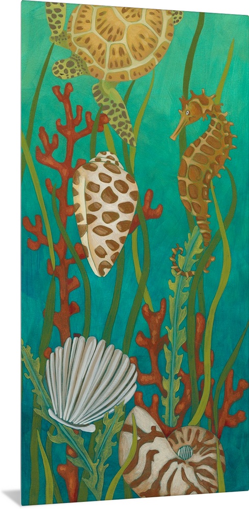 Art Decorative Art Green Wall Art Painting Shells Wildlife Marine Life Seahorse Chariklia Zarris