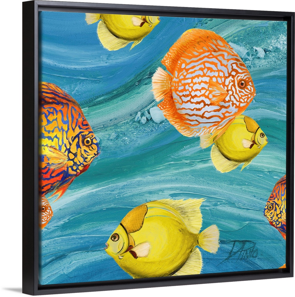 <p>Decorative artwork of a group of tropical fish in yellow and orange.</p>