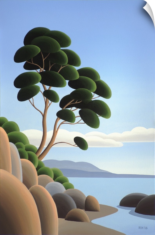 <p>Contemporary colorful painting of a wilderness coastline.</p>