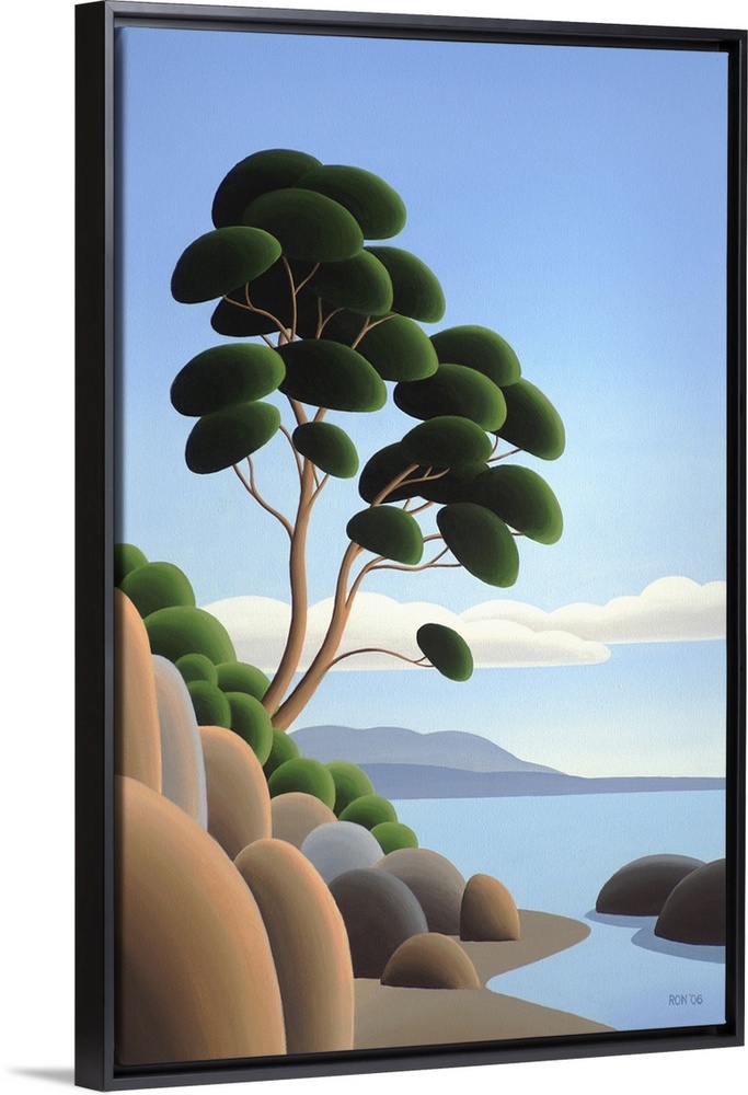 <p>Contemporary colorful painting of a wilderness coastline.</p>