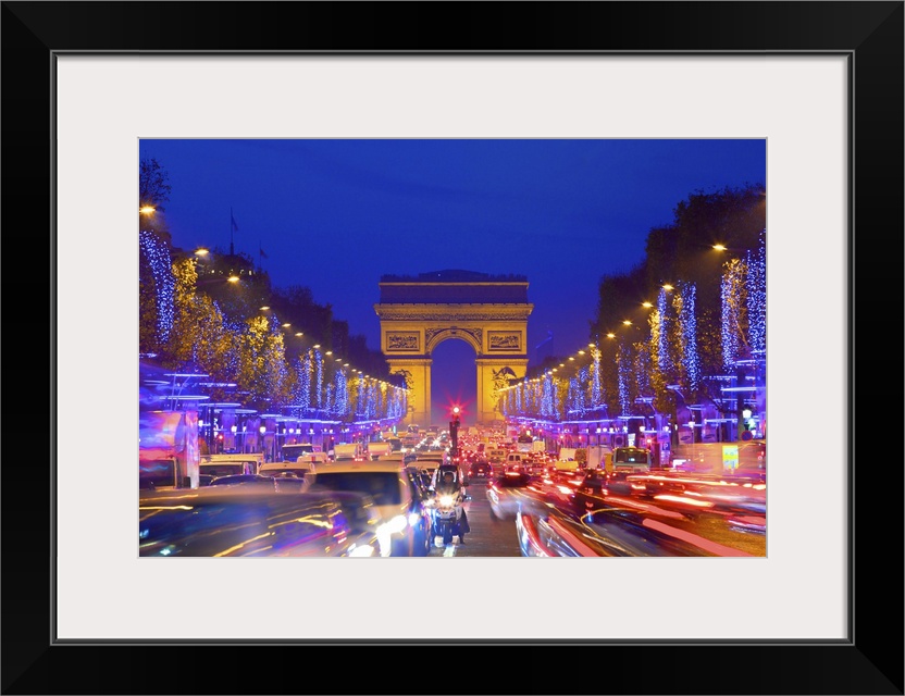 <p>Arc De Triomphe And Xmas Decorations, Avenue des Champs-Elysees, Paris, France, Western Europe.</p>