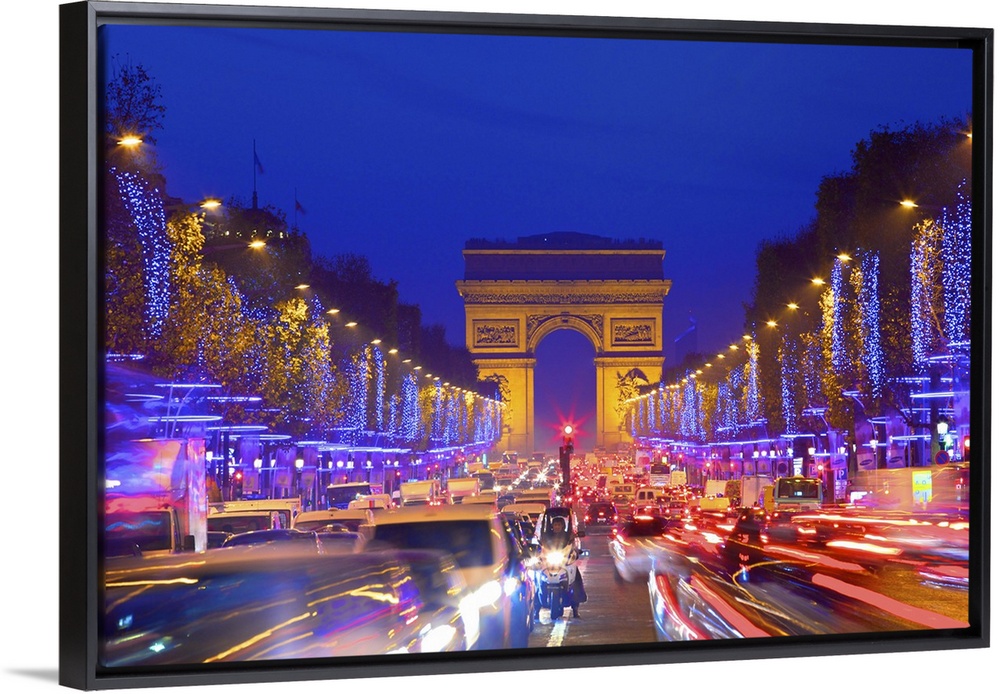 <p>Arc De Triomphe And Xmas Decorations, Avenue des Champs-Elysees, Paris, France, Western Europe.</p>