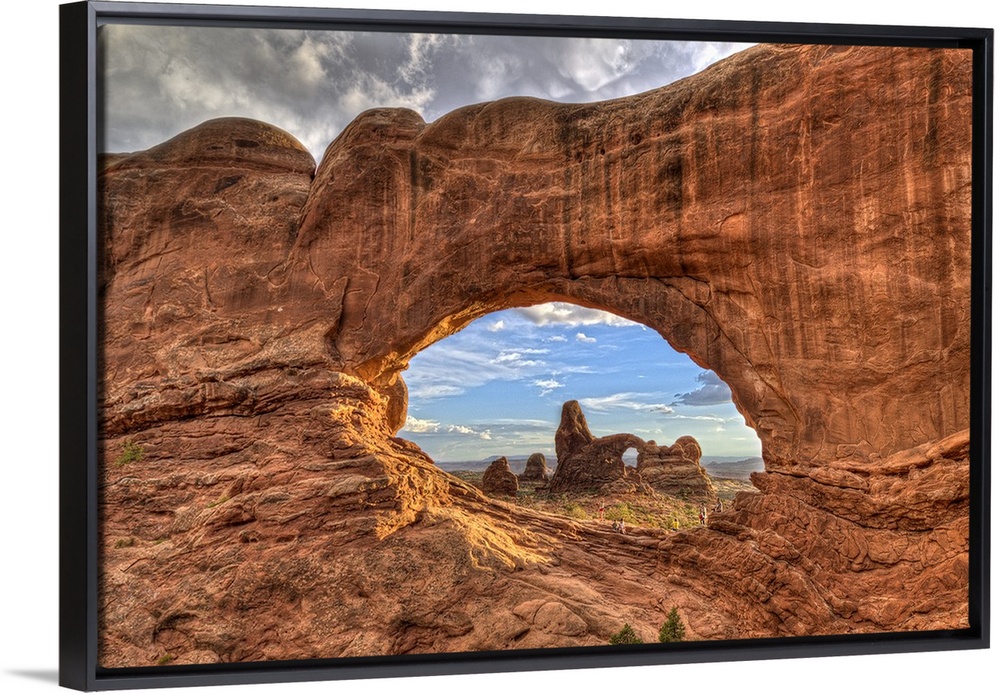 <p>Photograph of a large rock formation seen through a rock arch.</p>